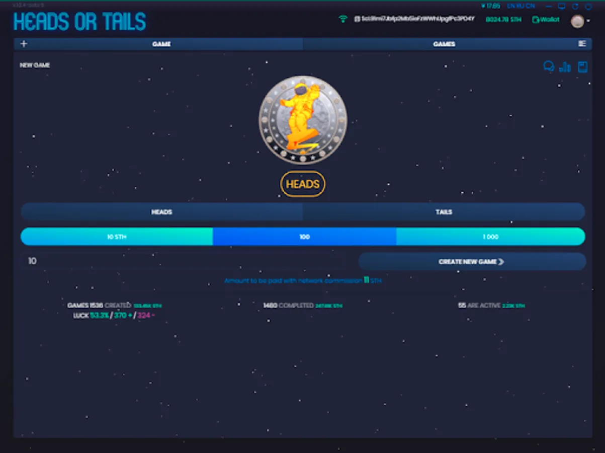 “Heads or Tails” is a multiplayer game, based on the SmartHoldem DPOS blockchain.