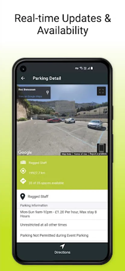 Each parking area marker on the map displays a colour and the number of available parking spaces. Simply tapping a map marker will reveal details of the parking spaces in that particular area. This will show you details about the parking spaces such as the hours of operation, tariffs, and other features.