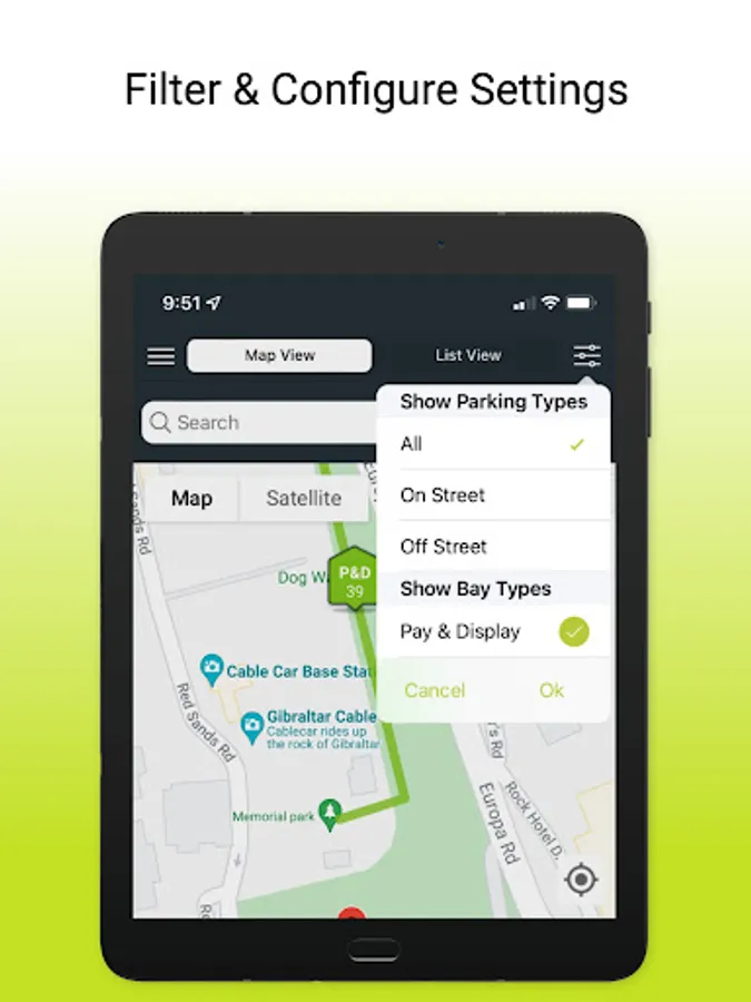 Using a simple red, amber and, green markers on the live app map, the Gibraltar Parking app provides accurate information about where you are most likely able to find an available parking space. The Gibraltar Parking app reads your smartphone GPS based location then directs you to your chosen parking space location.