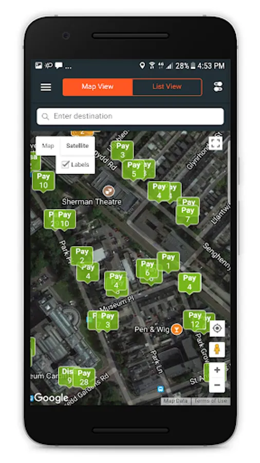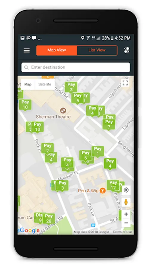 Using a simple red, amber and, green markers on the live app map, the Smart Parking app provides accurate information about where you are most likely able to find an available parking space. The Smart Parking app reads your smartphone GPS based location then directs you to your chosen parking space location.