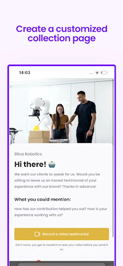 Create a customized page where you can collect testimonials from clients just by sharing a link