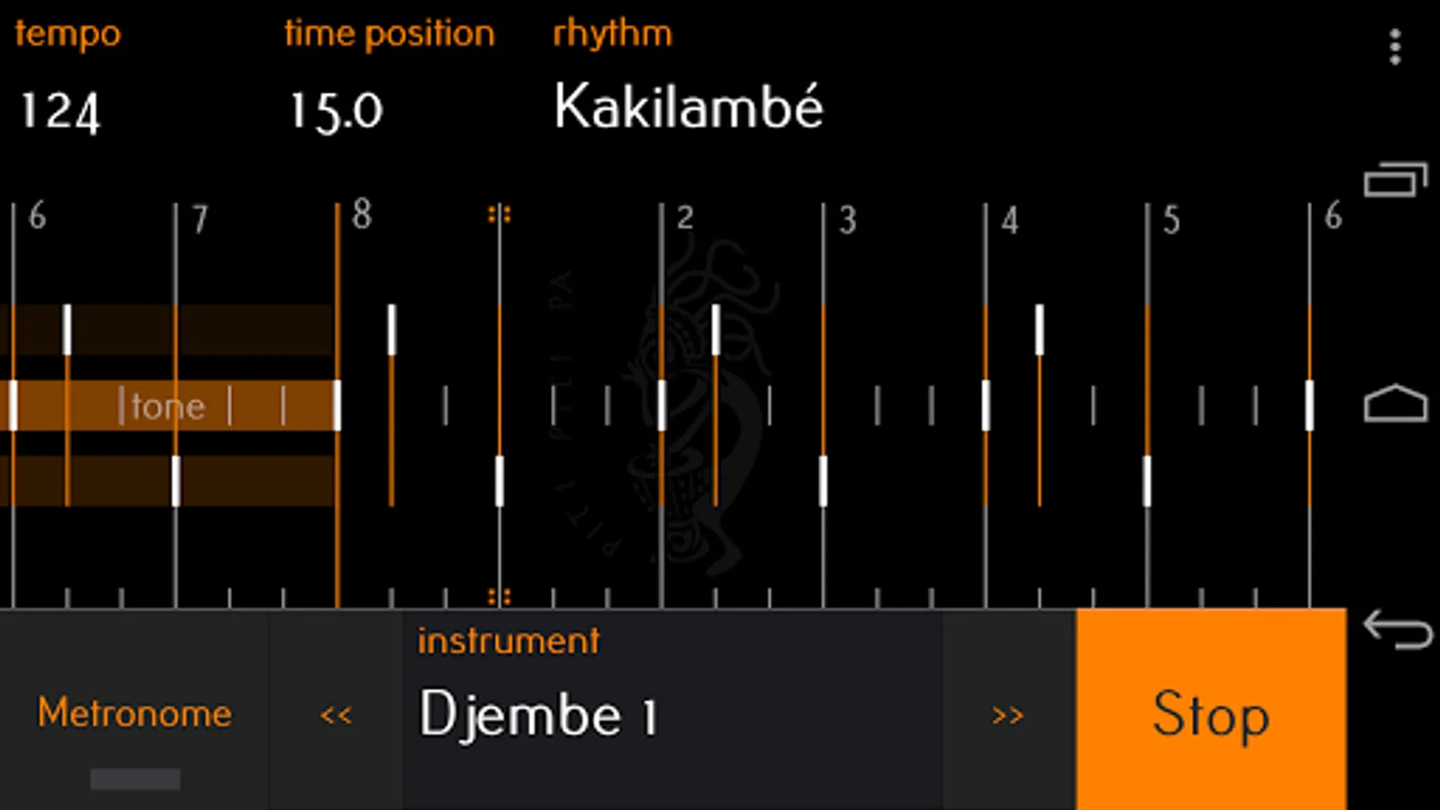 Your personal djembe trainer, it will play various traditional african rhythms at your pace, whenever and wherever you want.