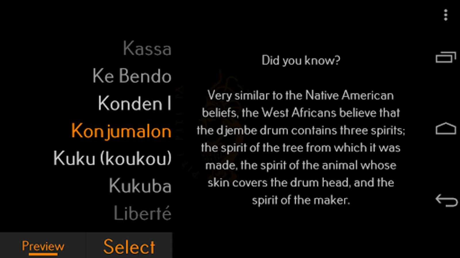 • Support for Djembe, Kenkeni, Sangban and Dununba