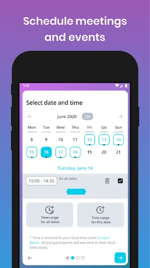 Dates And Times - Schedule events or suggest new dates and times with our integrated calendar view and time period picker