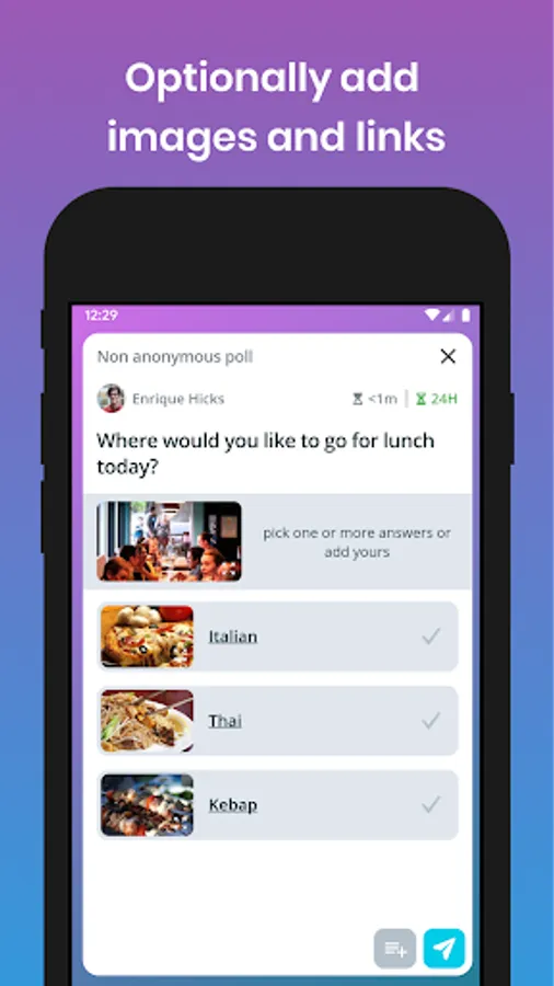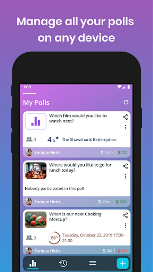 Notifications - Don't miss when your friends vote or add a new option, you are automatically notified about updates in non anonymous polls
