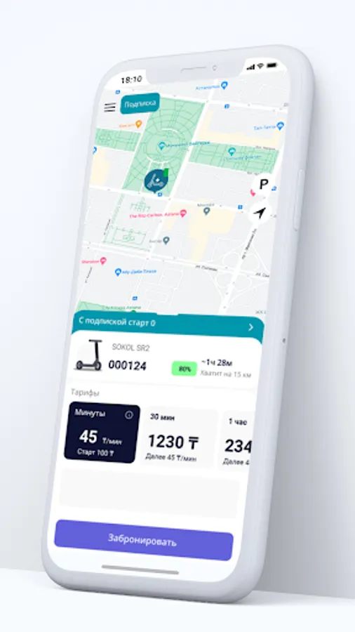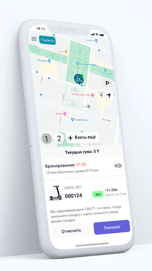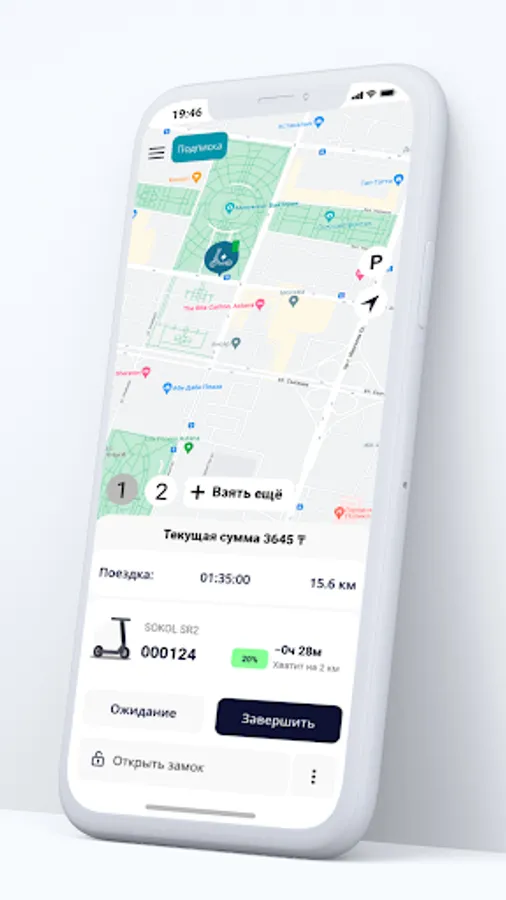 The application has a booking function, travel insurance, and a group trip - you can take several scooters and bicycles from one account.