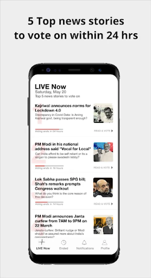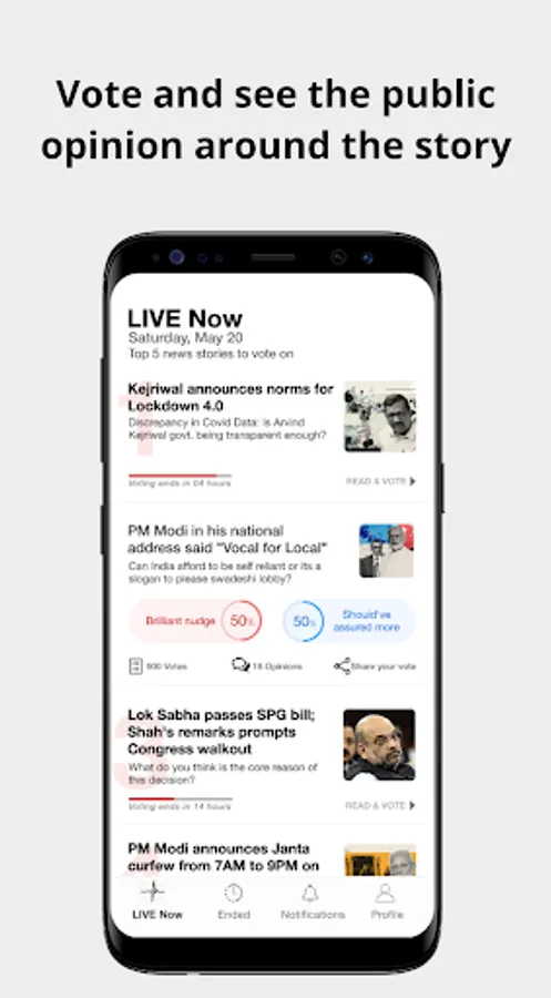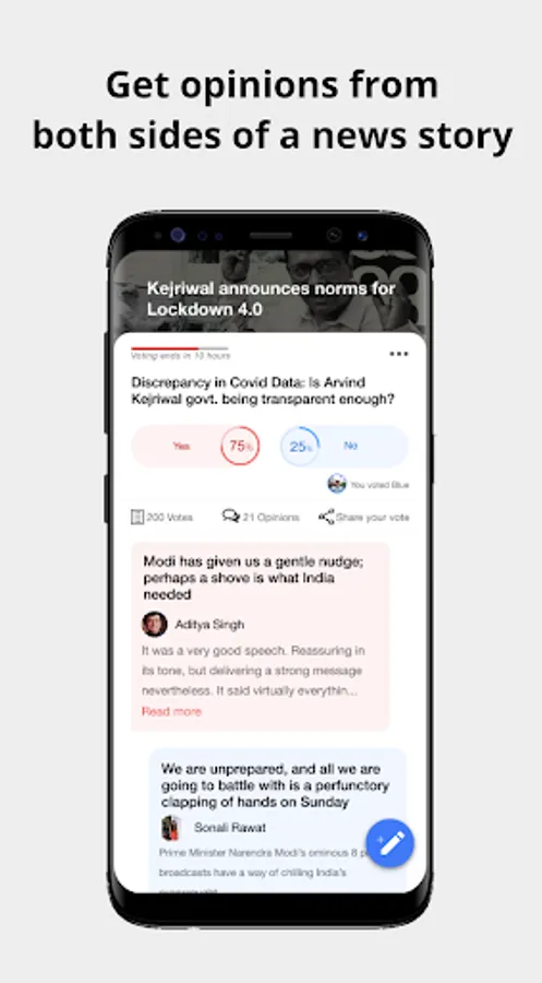 Make your opinion count with a vote and get the public opinion around the story