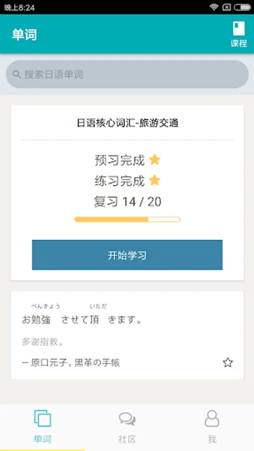 The app supports flashcards to learn Japanese words with examples. You can also use it for a dictionary, or create your own course to collect your own words.
