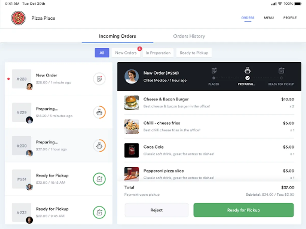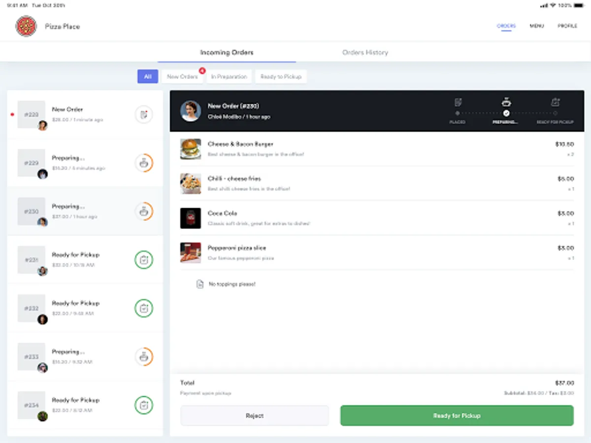 The spaceOS Merchant App is the order and item management tool that you can download and use to accept and manage orders, setup menus and manage item availability for your restaurant or shop that is part of the spaceOS marketplace. Managers and staff can use it to update progress of orders and notify customers when the order is ready for pickup.