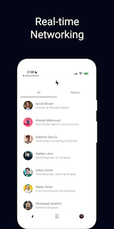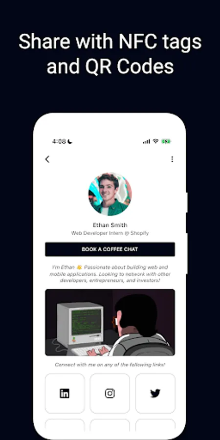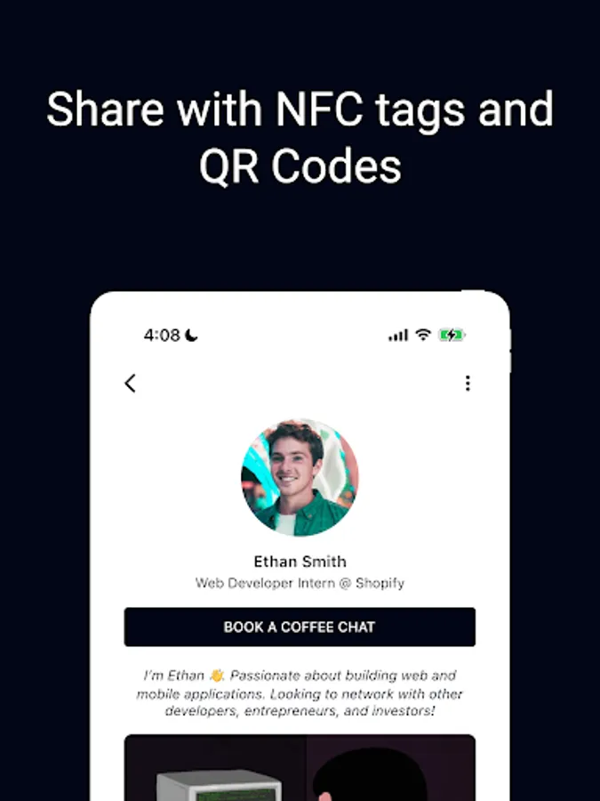 Real-time location based networking, custom profiles, and instantly sharable links with digital business cards