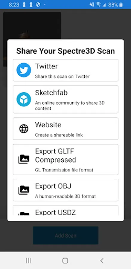 Spectre3d is a premium 3D scanning app. You can use it to capture detailed scans of people, objects, and environments. Capture reality with Spectre3D.