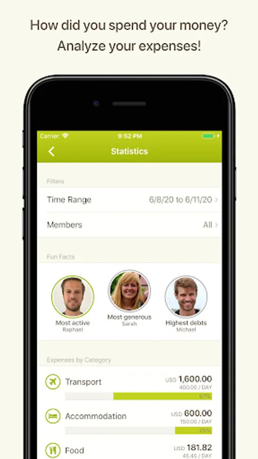 Use case: Imagine you are on a trip with two friends: Emma and Daniel. You pay $100 for gas for the trip. Anyone with a calculator can divide that price three ways, but even then, you’d normally have to keep a record of the expense in order to divvy it up later. With Splittr, this expense is entered in a couple of seconds and divided equally with little time or effort.