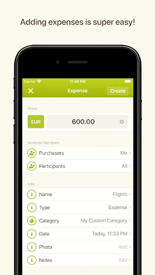 - Categorize your expenses (custom categories available)