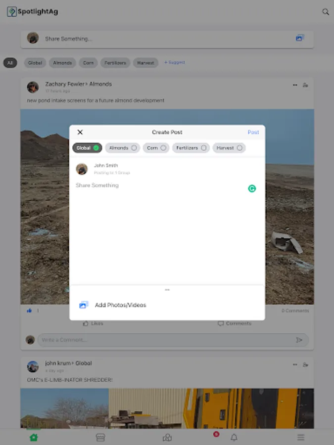 Connect with the Ag community through social media, messaging, and marketplace. Discover and share important topics around farming and growing agriculture. With the marketplace, you are able to search for services, equipment, and farming products in your local area. You can also post items for sale and negotiate a sell price. Receive instant notifications when people interact with you on social media, message you, or make you an offer on the marketplace.