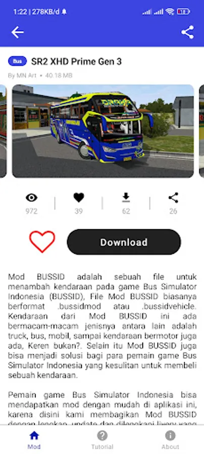 This application contains mods for the BUSSID game, with this application you can easily get mods for BUSSID. In this application, there are mods along with Livery that are complete and easy to download without safelinks, extracts and passwords.