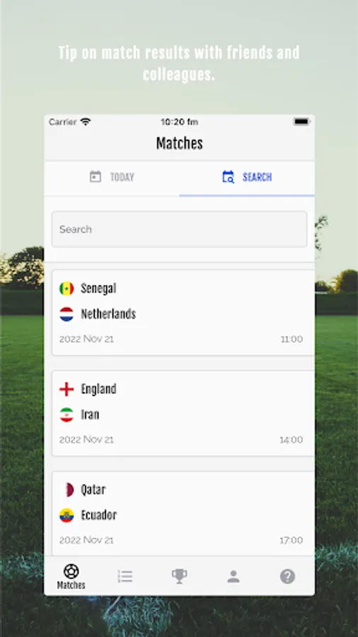 Invite your friends and bet on the results in the Football WC 2023 matches to see who's the best of your friends and colleagues. You can set up your own groups and at the same time compete against all users. You also have the option to bet on which team will end in first, second and third place in the tournament as well as the top scorer.