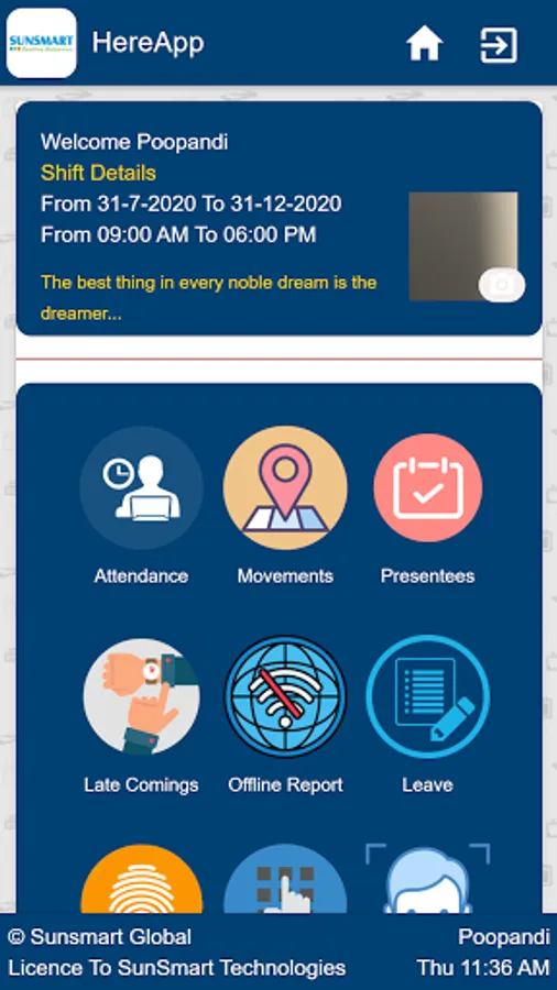HereApp is a comprehensive Employee Self Service Application which provides a convenient way to register Attendance based on your location, using either a simple click of button or advanced biometrics like Fingerprint, Smartcards and Facial Recognition, track daily movements with Google Map Integration, request for Leave and manage your daily task list conveniently on the go.