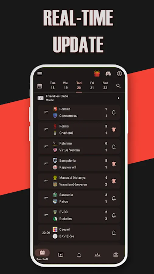 - Receive notifications: You can receive notifications about goals, red/yellow cards, and other events in football matches. This will allow you to stay up-to-date on the action, even if you are not able to watch the matches live.