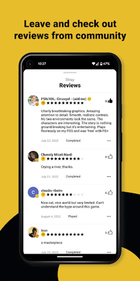 👉 Follow friends — Check out your friends’ profiles and follow them to see their progress. Compare your gaming tastes and accomplishments. And make gamer links.