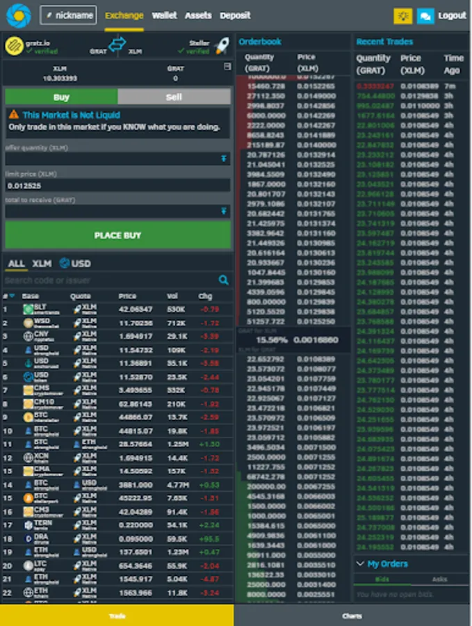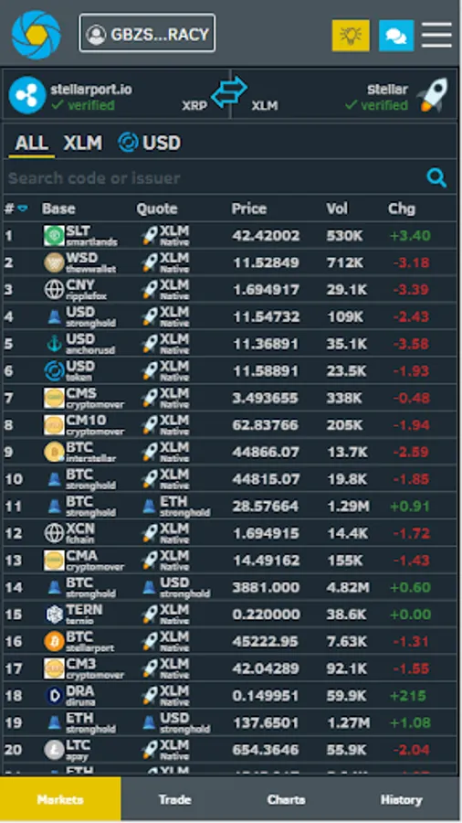 ► Scour through all the available assets on the Stellar network. Trade them in real time for FREE with other users all around the world. USD, EUR, BTC, ETH, XLM and much more!