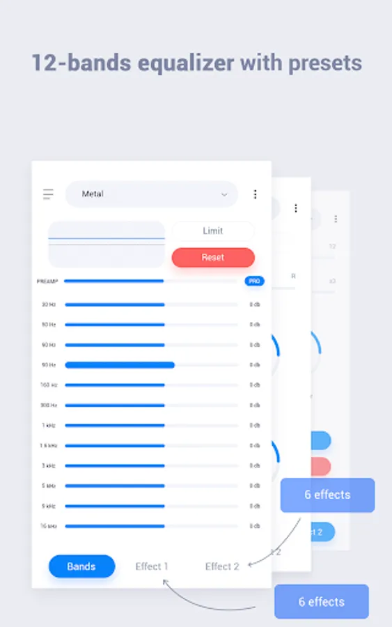 The main goal in development was to get sound of highest quality. This goal is accomplished by introducing powerful audio engine which controls 12-bands equalizer and big variety of audio effects. The player gives complete freedom for experementations, using it manually or by presets.