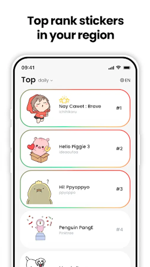 Browse through collections of sticker packs curated by our editor. Or see for yourself from the new and top sticker lists.