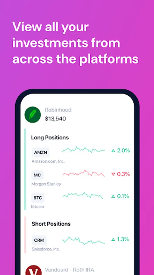 • Monitor your investment portfolio in one place by linking all your brokerage accounts.