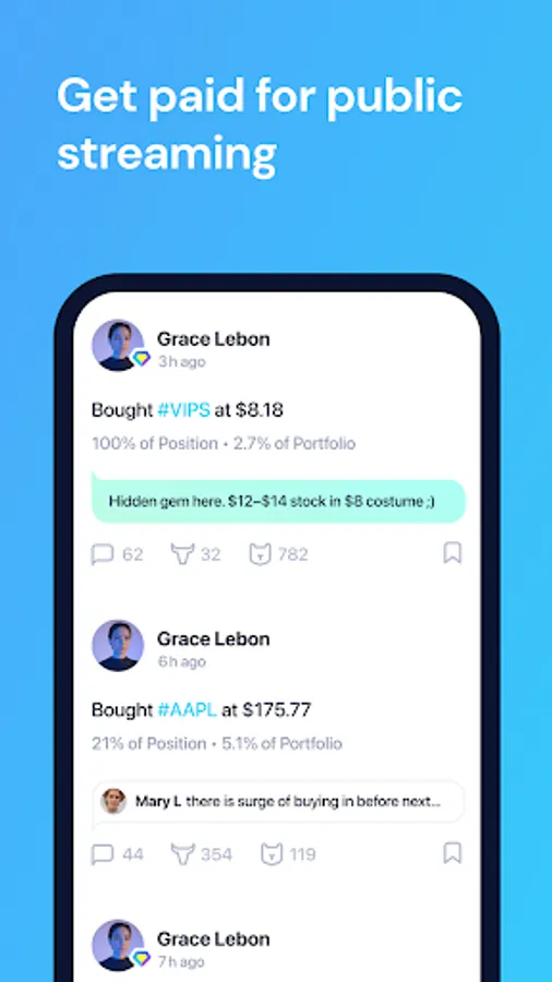 • Explore investment strategies by viewing verified trades of your friends and recognized high performers.