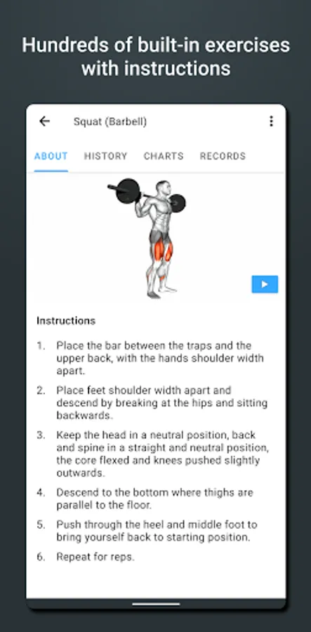 • Advanced Statistics show your personal records and progression and even calculate your one rep max and total weight lifted!