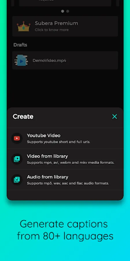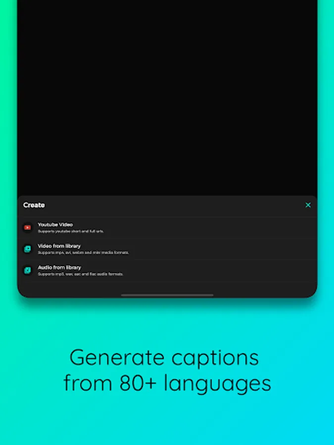 - Generate captions/subtitles for Youtube Videos by pasting the link or just sharing from Youtube App