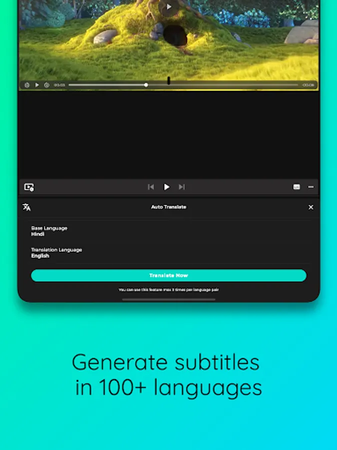 - Generate captions/subtitles for video files for up to 60 minutes.