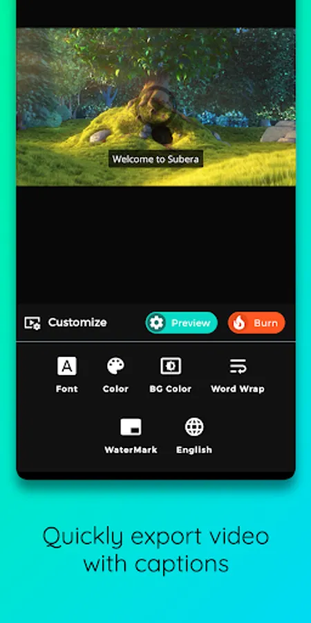 Subera Automatic Caption/Subtitle Creator & Editor. You can generate captions in 85+ languages and translate them into 100+ languages. And quickly export it in various formats & also burn them onto videos.