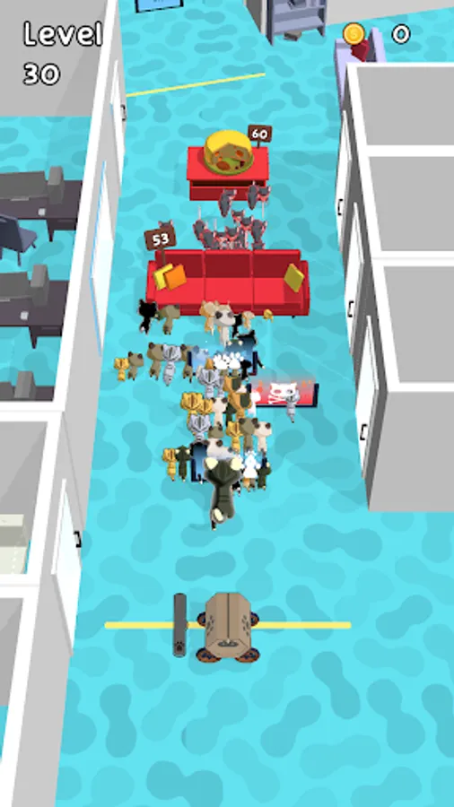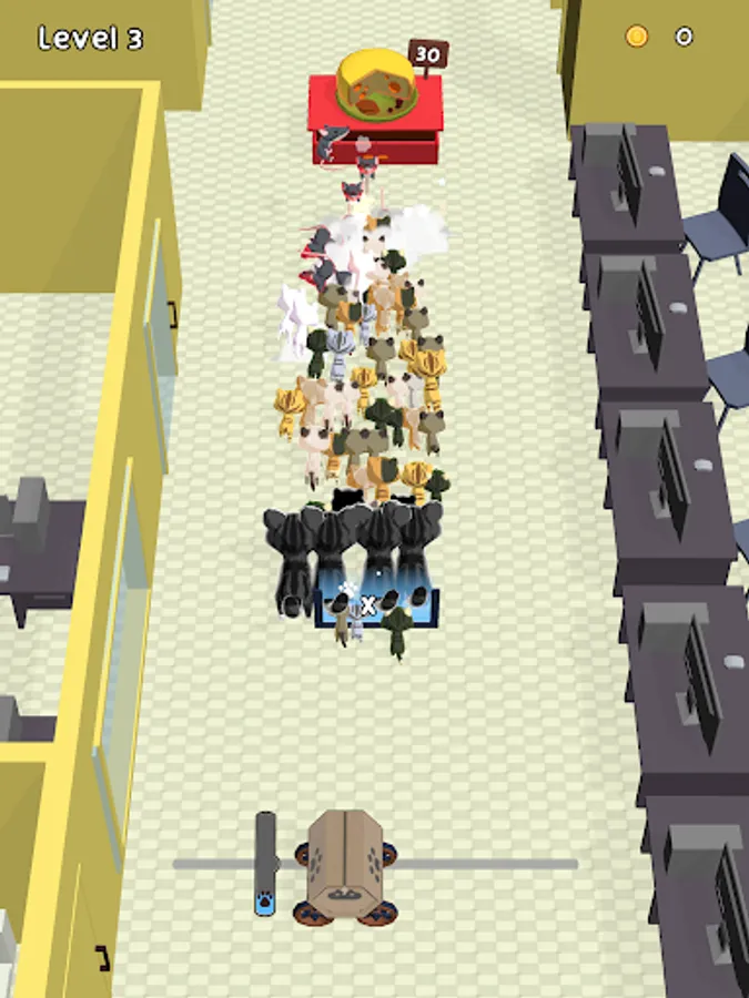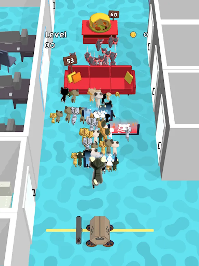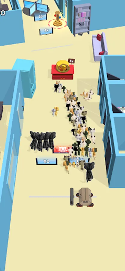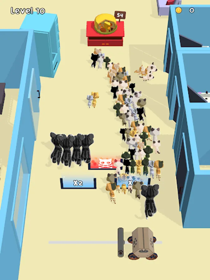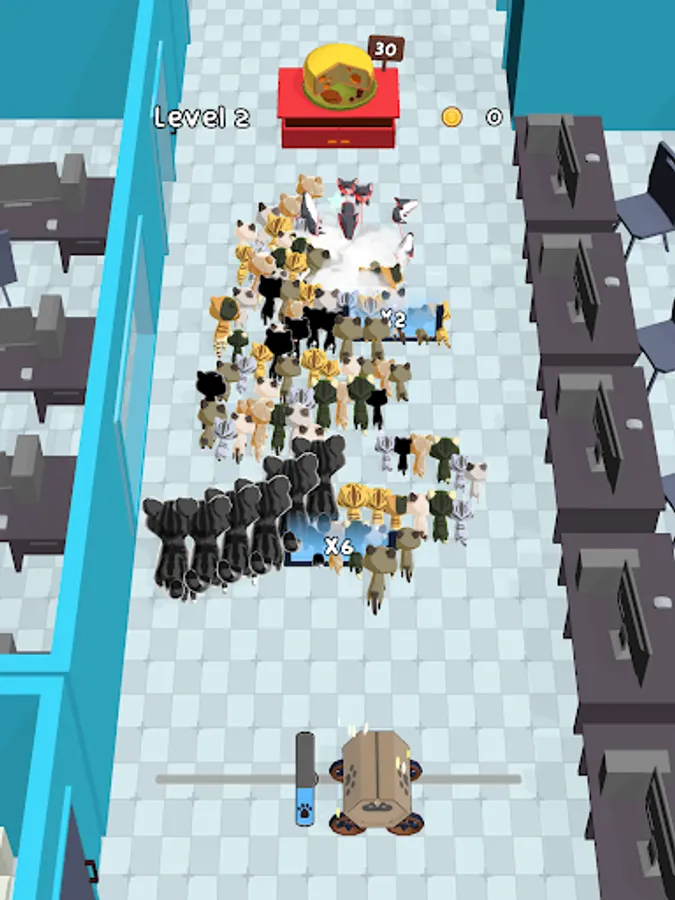 Meow Force is a hyper casual game that will challenge your reflexes and strategy skills in a fun and addictive way. In this game, you are the leader of a cat army that is determined to stop the invasion of the pesky mice. You have a powerful weapon at your disposal: a cat-cannon that can shoot hundreds of cats at the tip of your finger. Your goal is to use your cats cannon to spawn as many cats as you can and watch them chase and destroy the rodents. The more mice you catch, the higher your score will be. But be careful, some obstacles will block your cats from reaching their prey. You have to avoid or destroy these obstacles to clear the way for your cats. You can also use power-ups and upgrades to enhance your cats and your cannon. And if a mouse escapes your sight, you will lose the game and have to start over. How many mice can you catch before they overrun you? How long can you survive in this cat-and-mouse game? Find out in Meow Force, the ultimate game for cat lovers and mouse haters!