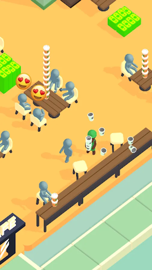 Sell a variety of drinks, keep your store clean and make your customers satisfied. Expanding your coffee shop allows you to hire employees, buy new tables, and attract more customers!