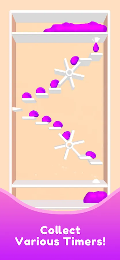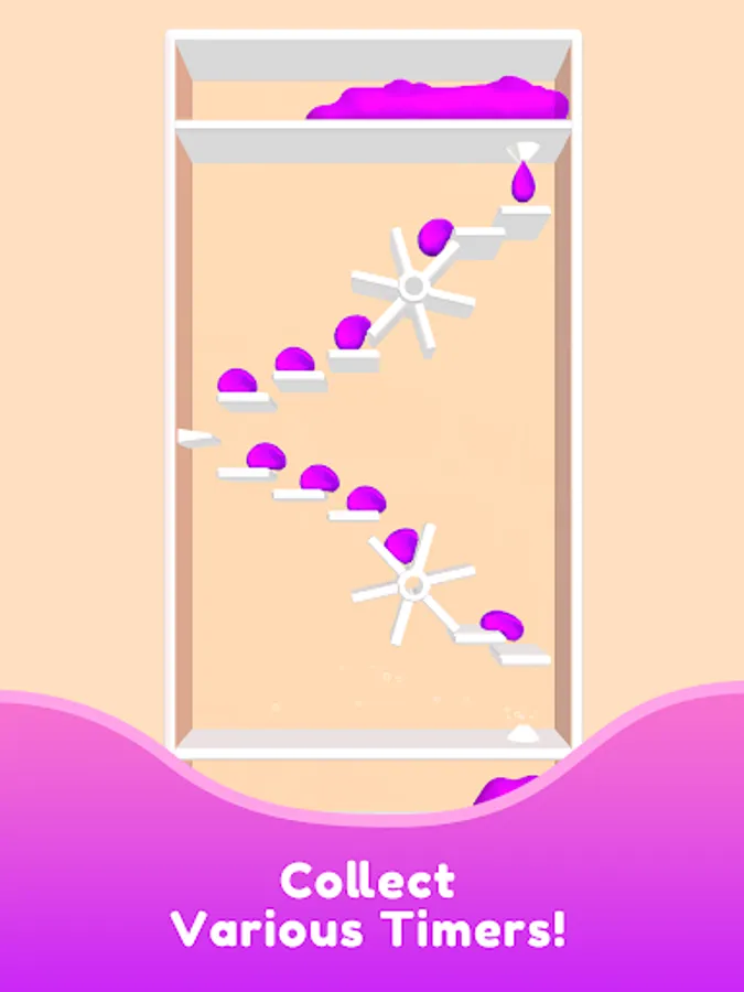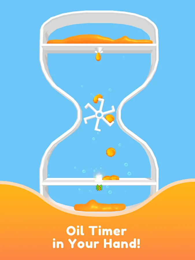 ⏳ Various oil liquid timer. Never get bored with different types! Not only with a variety of shapes, but varied elements of it such as stairs, water wheels are available. Unlock and play the new hour glass!