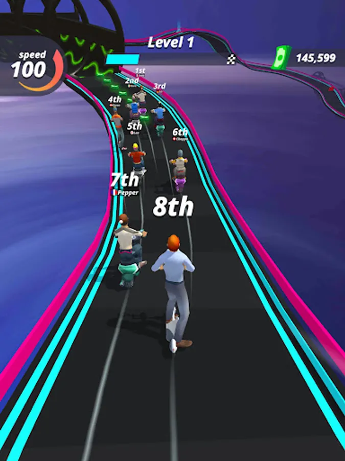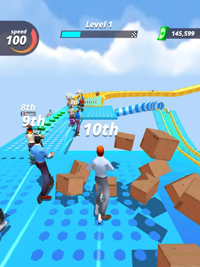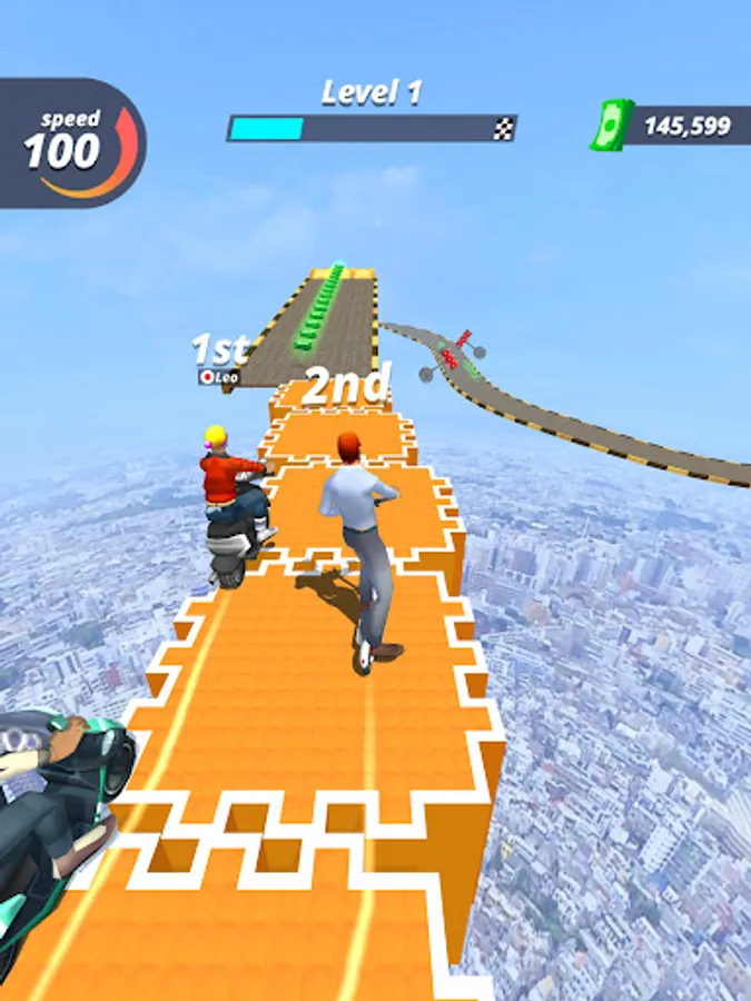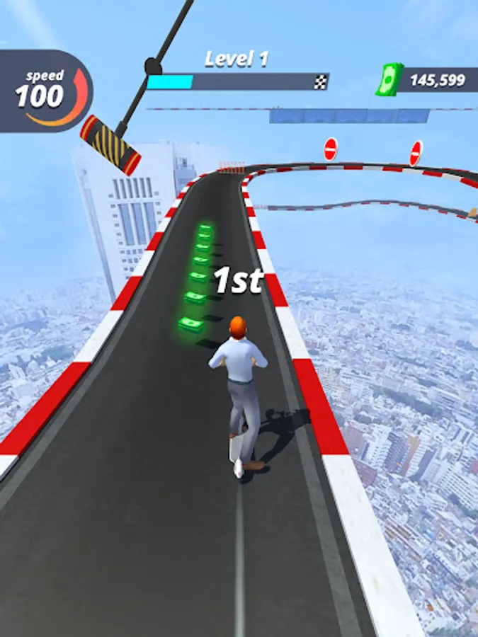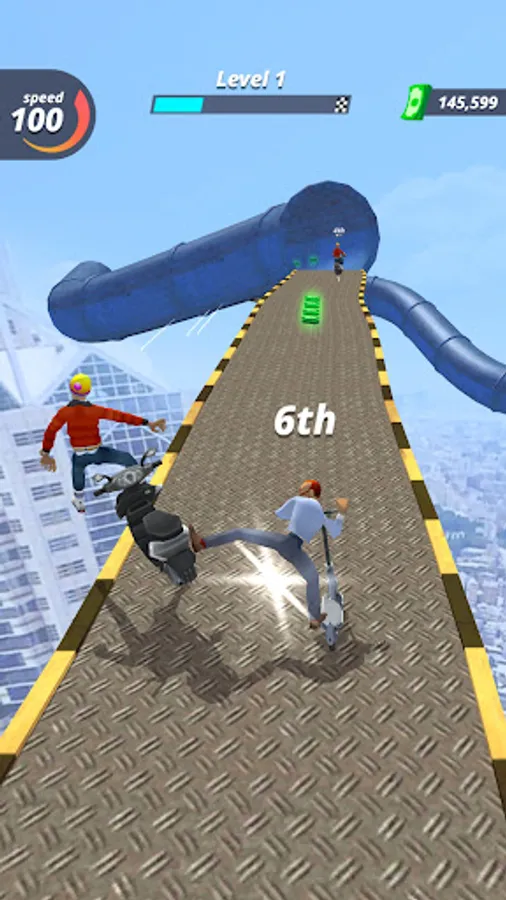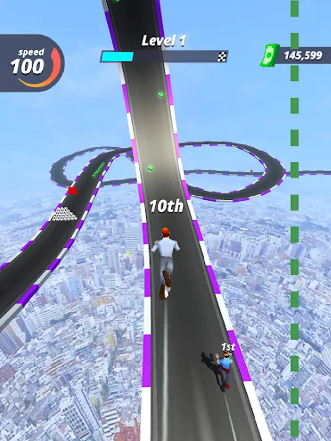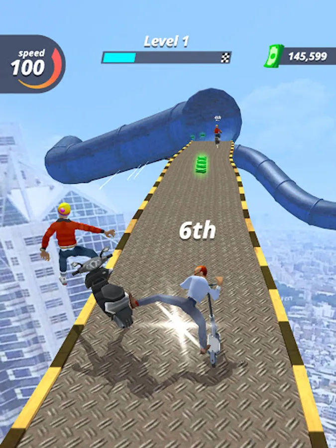 You'll feel like you're truly flying through the city. Scoot Rush offers thrilling racing on a track high up in the air with a variety of dazzling designed maps and themes. From urban landscapes to exotic locales, each track presents a unique challenge with its own set of obstacles and surprises. Every race is a new opportunity to explore and conquer diverse tracks.