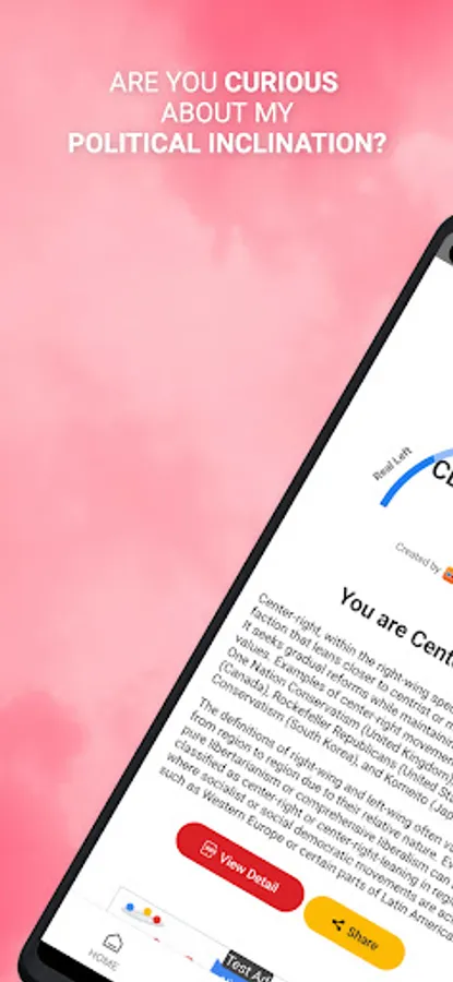 Are you curious if I'm left-leaning or right-leaning? We conduct the test by randomly selecting a curated set of numerous questions. Questions are continually added, allowing you to objectively determine your political orientation in four categories. Check your political orientation and share it with your friends!