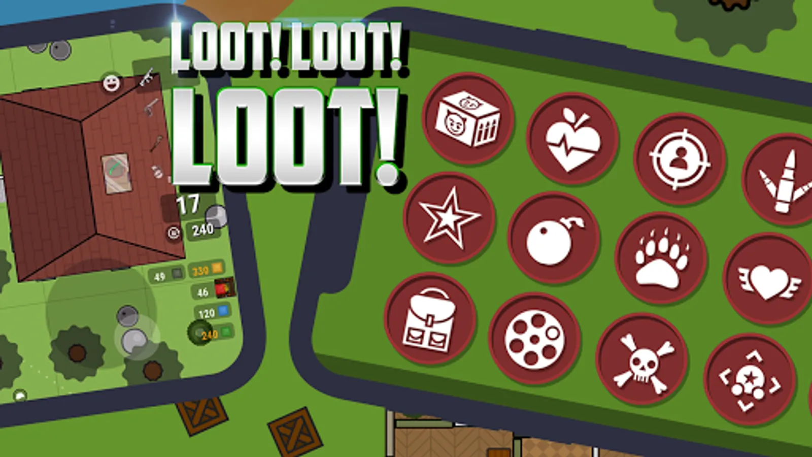 ⭐ LOOT! LOOT! LOOT! A wide variety of weapons, firearms, throwables, medical items, armor, scopes, and backpacks to customize to your personal play style.