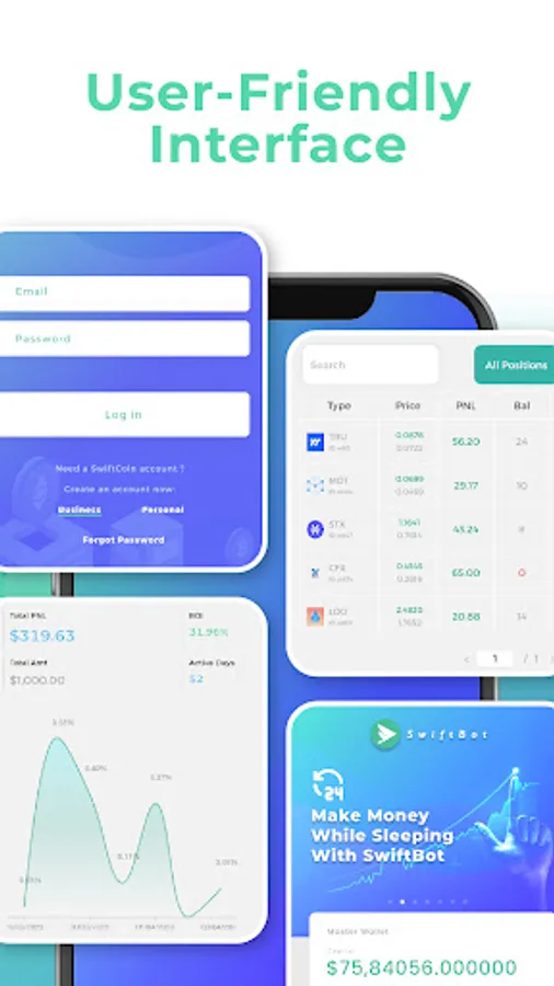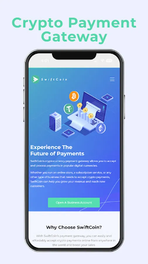 • User-Friendly Interface: SwiftCoin allows you to manage your crypto portfolio, trade on the go, and accept payment anytime, anywhere.
