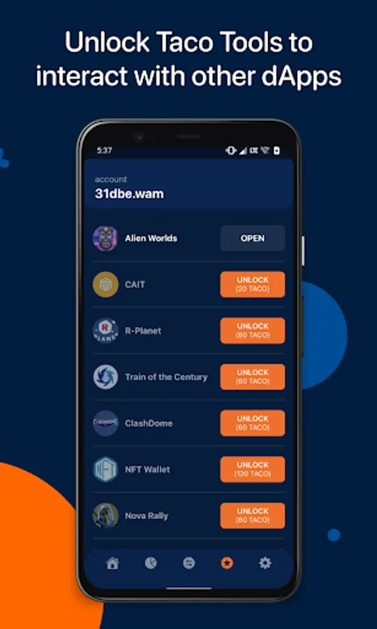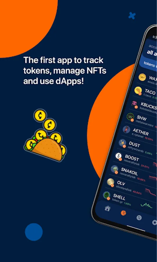 Taco app is a WAX chain utility tool. This app integrates with different wallets to provide every WAX user an amazing experience and interface to make transactions, swap tokens, manage NFTs and interact with other dApps.