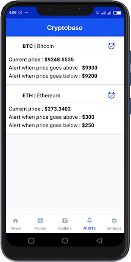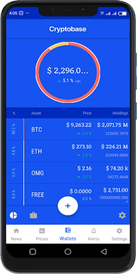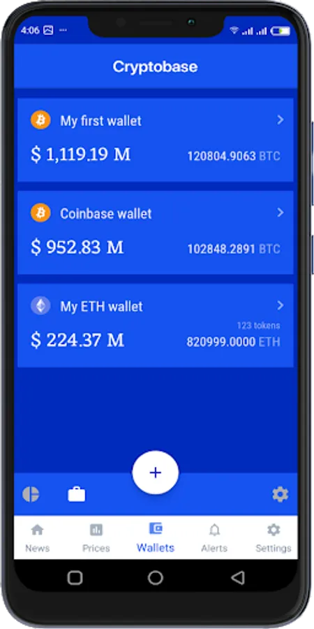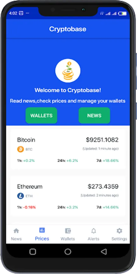 Cryptobase is the best way to keep track of the values of all your cryptocurrency wallets, check cryptocurrency prices, read latest news about cryptocurrencies and get cryptocurrencies price alerts. It will help to get overview of your crypto portfolio holdings by checking in the respective block explorers and archive your wallet information in you mobile for an easy checking at every time.