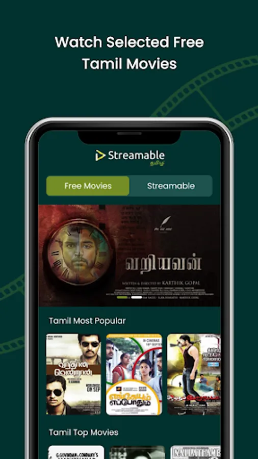 Enjoy free Tamil movies anytime and anywhere with a better viewing experience. The Streamable - Tamil Movies app is the best way to explore movies, and keep a track of the ones you want to see, rate, and recommend them by sharing it with your friends and family.