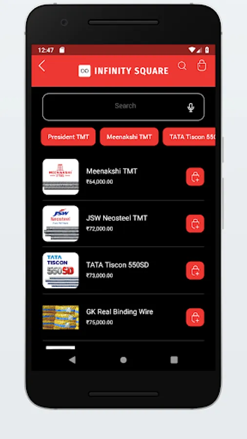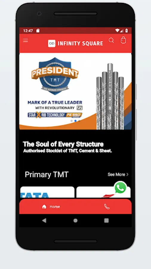 Infinity Square is Authorised Stockist of TMT Steel, Cement and Sheet. with Best Quality Brands such as TATA Tiscon TMT, Meenakshi TMT, President TMT, Birla Super Cement, Ultratech Cement, ACC Cement, Birla A1 Cement, Penna Cement, Maha Cement, Sagar Cement, Ramco Sheets. Find Daily Wholesale Prices with Free Delivery in Bangalore.
