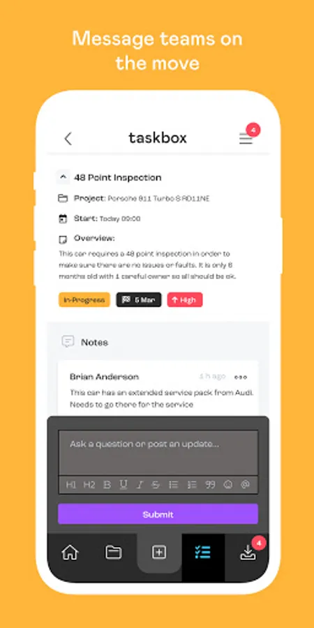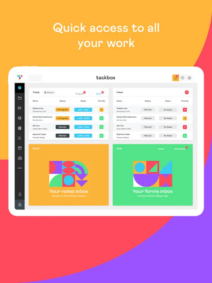 There’s a taskbox for any situation. Whether you’re in the office, or on the go - stay up to date and connected with your teams with real-time updates and information.