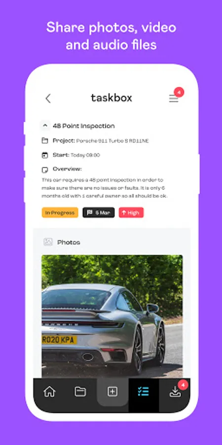 Instant communication with all your teams on any project that you are working on. Message directly, regarding a specific task, issue, or photo. No need for multiple channels - Taskbox will handle everything from here. Share photos and video to keep people even more informed on your progress.