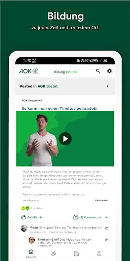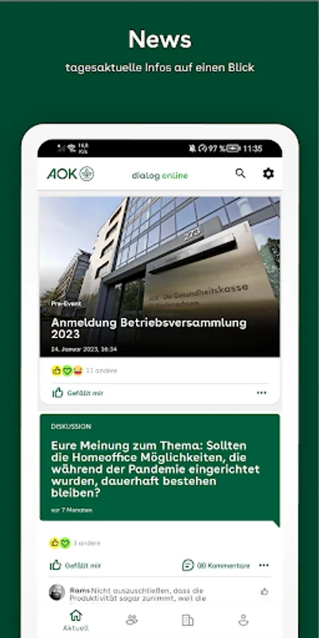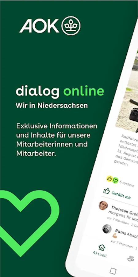 The app is part of the internal corporate communication of AOK Lower Saxony. The employees receive messages from the company management and a colorful mix of topics from the AOK world via the app.