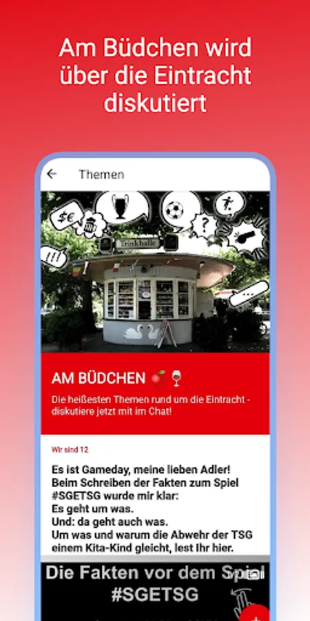 We are 12 is the digital ‘Büdchen’ for fans of Eintracht Frankfurt. Here you can find out everything about your club in one place, you no longer have to laboriously search for information individually on the internet.