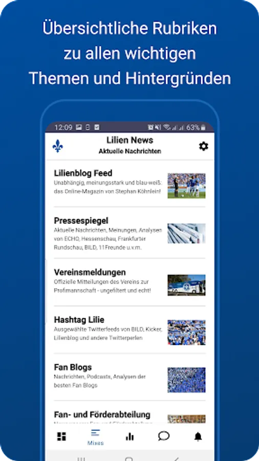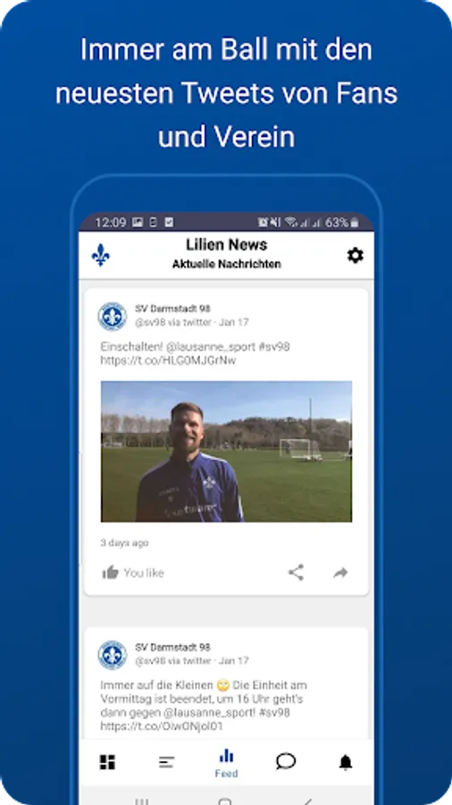The app is supported by the Lilienblog, the online magazine about SV Darmstadt 98. However, it is not just the articles from the Lilienblog or other media. Lily News also includes the content of blogs, fan groups, tweets or other social media activities.