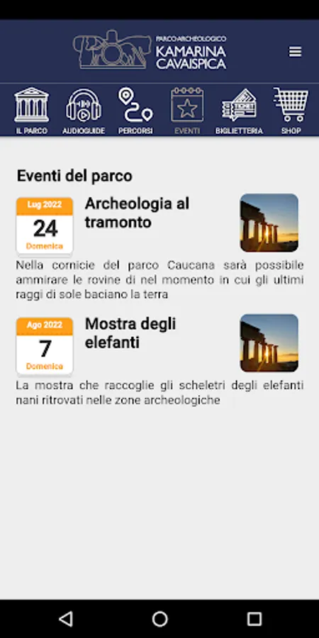 Kamarina Park is the official App of the Archaeological Park of Kamarina and Cava Ispica in the province of Ragusa.