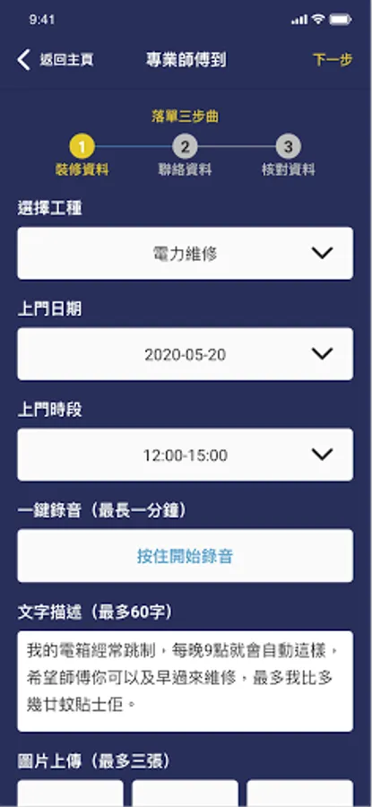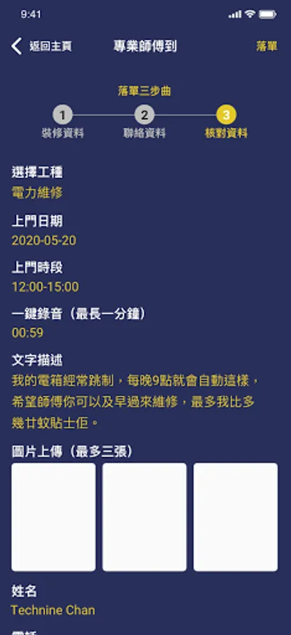 Customers can upload recordings/pictures to explain the required services, speeding up the follow-up time of the master